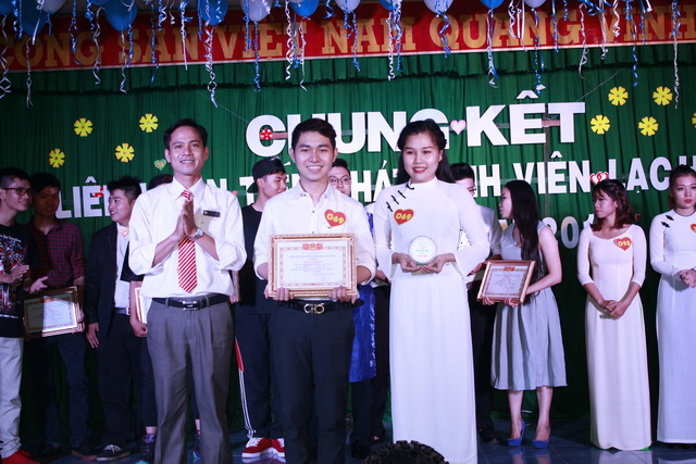 Hình 4: Đ/c Lê Sơn Quang - Bí thư Đoàn trường trao giải thưởng cho các tiết mục Song, tam ca