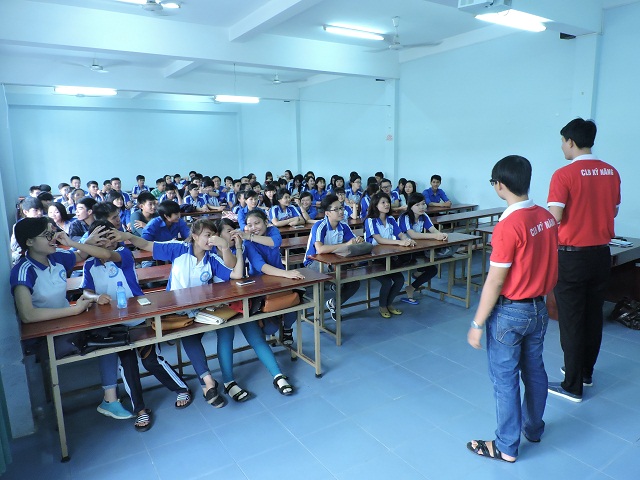 Hình 1- Học viên Lớp tập huấn tham gia sinh hoạt tập thể do các bạn clb Kỹ năng thực hiện