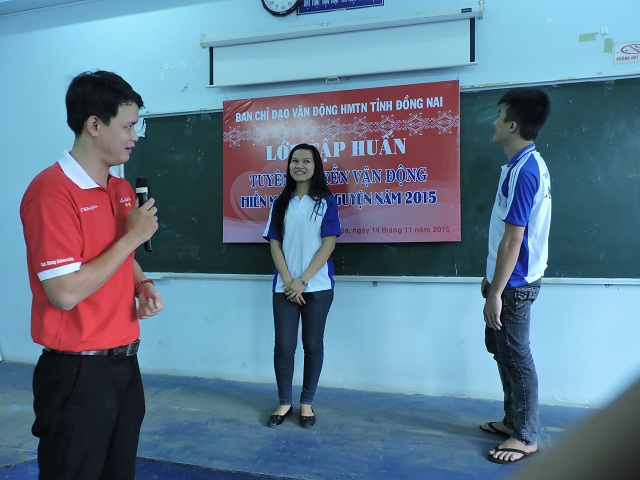 Chương trình tập huấn được lồng ghép các hoạt động trao đổi, chia sẻ kinh nghiệm vận động hiến máu tình nguyện, sân khấu hóa. Bà Nguyễn Thị Ánh – Thường trực ban chỉ đạo HMTN tỉnh Đồng Nai phát biểu tại lớp tập huấn cho biết: "Qua lớp tập huấn, tôi hi vọng rằng sẽ cung cấp cho các học viên những thông tin, kiến thức chuyên sâu về hiến máu tình nguyện. Kết thúc lớp học, tôi mong rằng các bạn sinh viên sẽ triển khai các nội dung tập huấn lại cho nhiều người hơn nữa để kiến thức về hiến máu được truyền tải sâu rộng đến nhiều đối tượng và ngày càng có nhiều cá nhân tích cực trong các hoạt động hiến máu cứu người”.