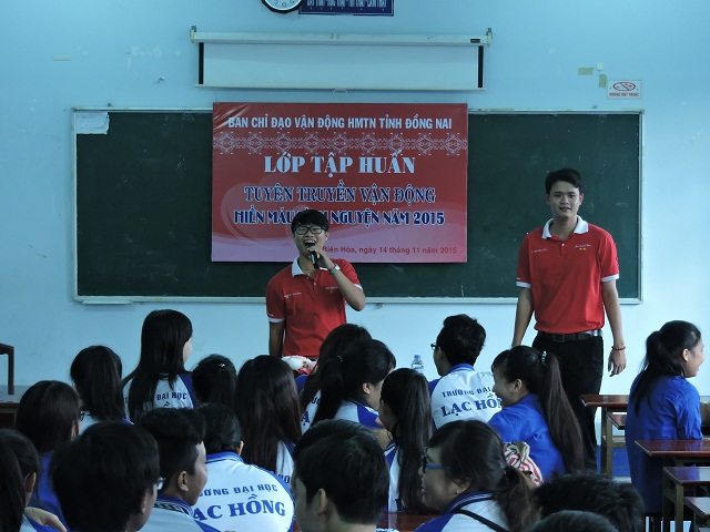 Sáng ngày 14 tháng 11 năm 2015, tại phòng E105, cơ sở 3, trường ĐH Lạc Hồng. Ban Thường vụ Đoàn trường ĐH Lạc Hồng đã phối hợp với Ban Chỉ đạo vận động hiến máu các tỉnh Đồng Nai tổ chức các lớp tập huấn nâng cao kiến thức về công tác tuyên truyền vận động Hiến máu tình nguyện cho sinh viên.