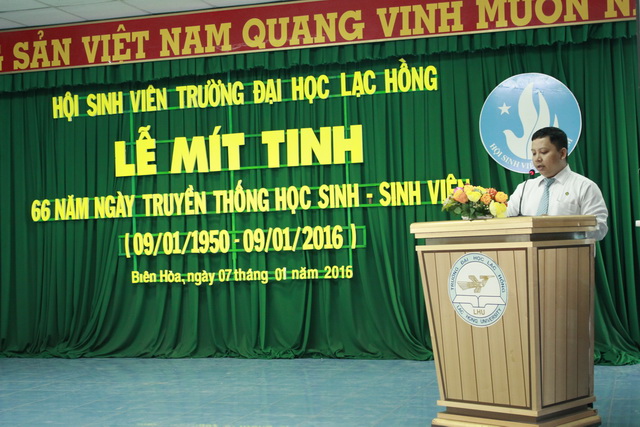 Thiết thực chào mừng kỉ niệm 66 năm Ngày truyền thống Học sinh – Sinh viên (09/01/1950 – 09/01/2016) và tuyên dương các điển hình “Sinh viên 5 tốt” cấp trường trong năm học 2014 – 2015. Sáng ngày 07/01/2016, tại giảng đường E501, Cơ sở 3; Hội Sinh viên trường ĐH Lạc Hồng đã long trọng tổ chức lễ Míttinh Ngày truyền thống của học sinh, sinh viên và Hội Sinh viên Việt Nam.