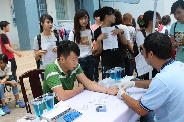 Hình 2; 3- Người hiến máu được kiểm tra sức khỏe trước khi tham gia hiến máu