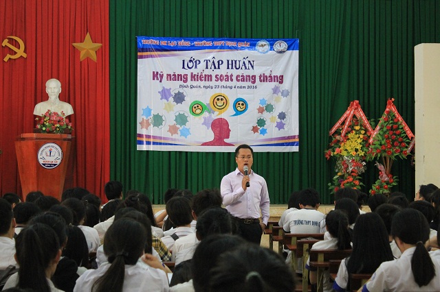 Được sự phân công của Đoàn trường ĐH Lạc Hồng ThS. Huỳnh Thúc Hiếu – UV. BTV Đoàn trường, Phó Chủ tịch Hội Sinh viên trường đã trang bị cho các em học sinh trường THPT Định Quán những nội dung cơ bản như: kiến thức cơ bản Stress, một số căng thẳng thường gặp của học sinh; tác hại của việc không kiểm soát được cảm xúc, kỹ năng giải tỏa căng thẳng, đồng thời hướng dẫn các bài tập thực hành quản lý cảm xúc….