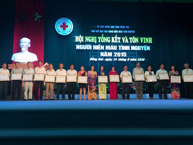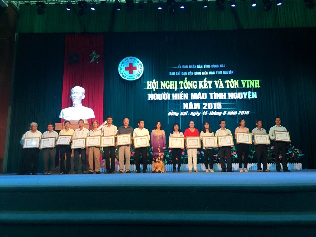 Tại hội nghị, Ban vận động hiến máu tình nguyện tỉnh Đồng Nai đã báo cáo tổng kết công tác hiến máu tình nguyện năm 2015, nhân dịp này Trung ương Hội Chữ Thập Đỏ Việt Nam đã trao tặng 08 đĩa Bạc, bằng khen cho 15 tập thể và 23 cá nhân có thành tích xuất sắc trong công tác hiến máu tình nguyện. UBND tỉnh Đồng Nai trao bằng khen cho 42 gia đình và 55 cá nhân nhiều lần tham gia hiến máu; trao bằng khen cho 20 tập thể và 25 cá nhân có thành tích xuất sắc trong công tác vận động hiến máu tình nguyện năm 2015.