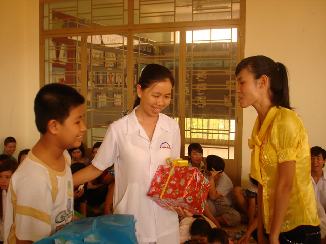Thí sinh tham gia cuộc thi “Sinh viên thanh lịch ĐH Lạc Hồng" thăm và tặng quà Trung tâm nuôi dưỡng trẻ mồ côi và khuyết tật TP. Biên Hòa.