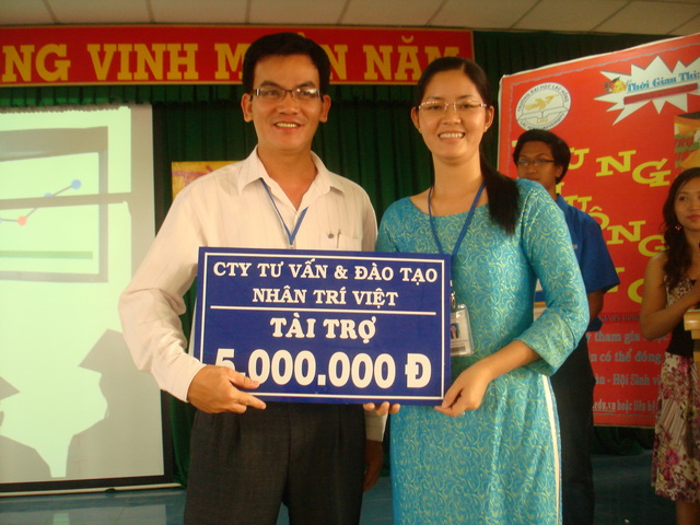 Hình 15: Th.S Nguyễn Hồ Xuân Hương nhận tài trợ của công ty Tư vấn và Đào tạo Nhân Trí Việt