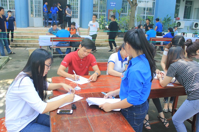 Hình 1- CB - GV - NV - Sinh viên đăng ký tham gia Hiến máu tình nguyện
