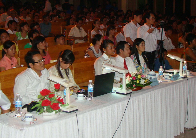 Hình 4: Th.s Nguyễn Hồ Xuân Hương (bìa phải) - Trưởng ban tổ chức cuộc thi và Đ/c Lê Sơn Quang (bìa trái) - Chủ tịch Hội sinh viên trường