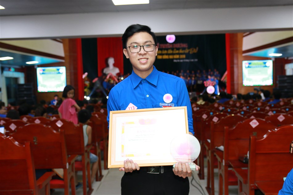 Đ/c Phạm Hồng Sơn – Bí thư Đoàn khoa/Chuyên viên khoa Cơ điện – Điện tử được tuyên dương tại buổi lễ