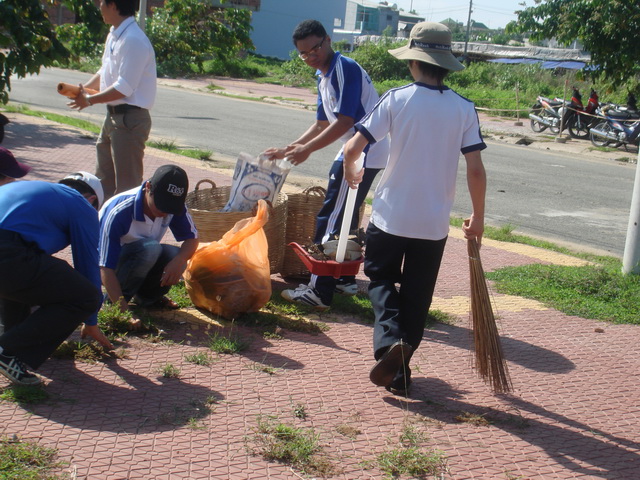 Hình 1:Dọn cỏ trên vỉa hè xung quanh cơ sở 4