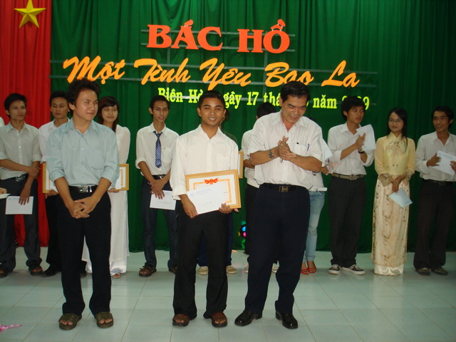 Hình 13: Đ/c Trần Tiến - P. Bí thư Đoàn trường trao giải khuyến khích
