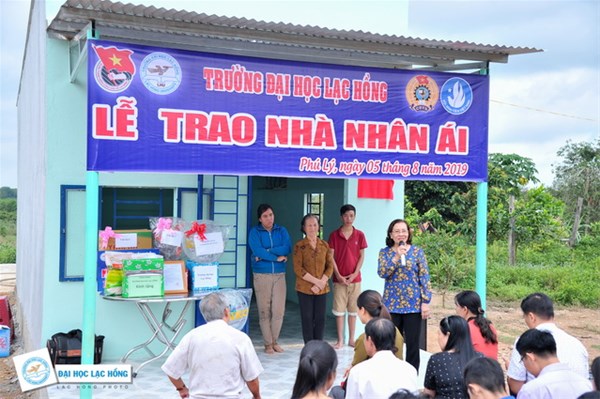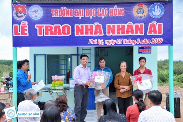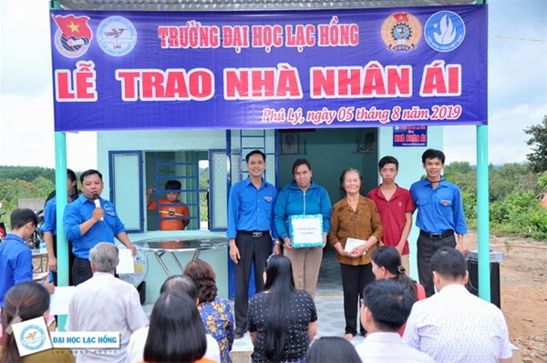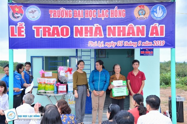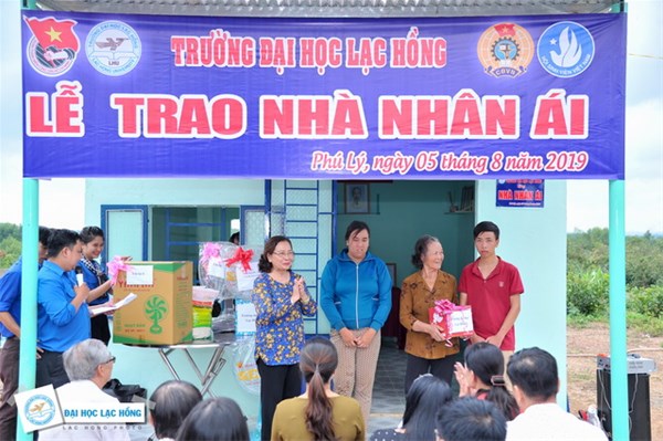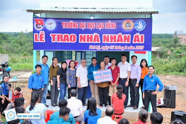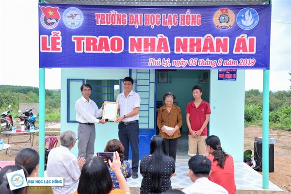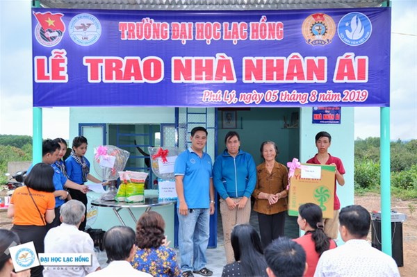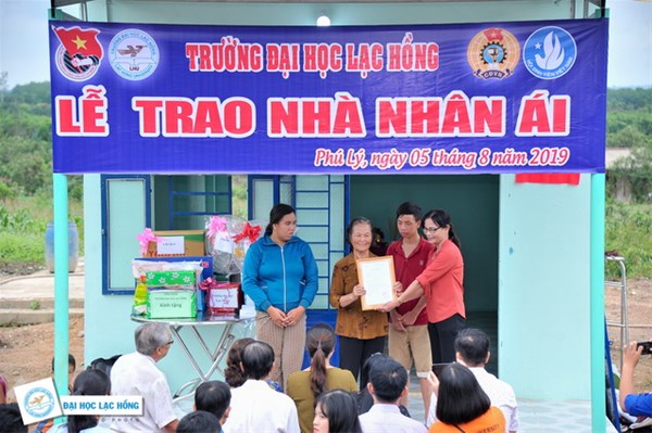 Nằm trong chương trình công tác Hè năm 2019. Sau gần 2 tuần khởi công xây dựng “Ngôi nhà Nhân Ái” trong chiến dịch Mùa hè xanh 2019. Trường Đại học Lạc Hồng, UBND xã Phú Lý, Đội Mùa hè xanh đã tiến hành bàn giao cho 02 chị em cháu Phạm Văn Hiệp ngụ ấp Bình Chánh, xã Phú Lý, huyện Vĩnh Cửu (Cháu Hiệp và chị gái hiện đang mồ côi cả cha và mẹ, đang ở nhờ cùng với bà nội tại nhà của chú ruột). Ngôi nhà với nguồn kinh phí được vận động từ thầy, cô, cùng các bạn sinh viên, Công đoàn trường ĐH Lạc Hồng và cá nhân Thầy Đỗ Hữu Tài – Hiệu trưởng nhà trường…Ngôi nhà với tổng kinh phí là 60 triệu đồng. Công trình cũng là dịp để tuổi trẻ ĐH Lạc Hồng chào mừng Kỉ niệm 70 năm ngày truyền thống Học sinh - Sinh viên và Hội Sinh viên Việt Nam (09/01/1950 - 09/01/2020), kỉ niệm 90 năm ngày thành lập Đảng Công sản Việt Nam.