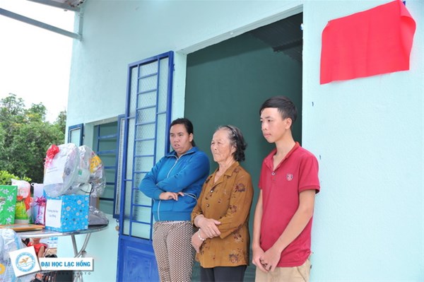 Hình 2: Đại diện trường ĐH Lạc Hồng trao căn nhà cho hộ gia đình tại địa phương