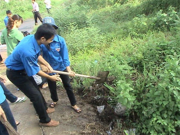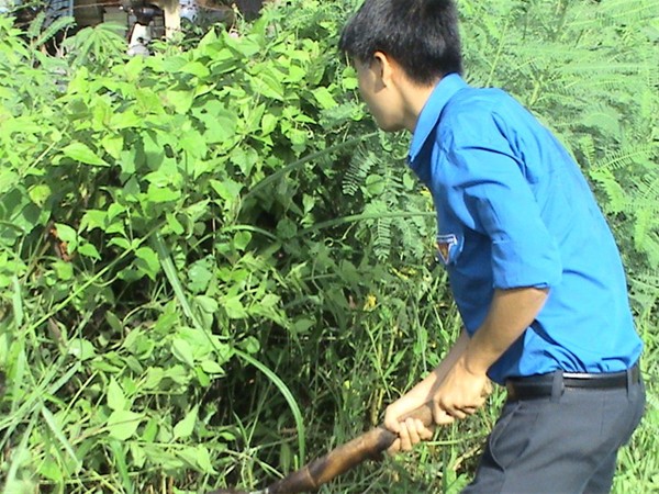 Hình 2: Cùng nhau dọn những bụi rậm ven đường