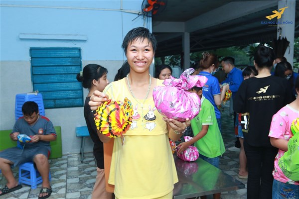 Vừa qua, sau cuộc thi thiết kế lồng đèn trung thu LHU 2022, toàn bộ các tác phẩm của 20 đội thi cùng 30 phần quà đã được trao đến tay 30 em nhỏ mồ côi, khiếm khuyết tại Mái ấm Bắc Hải ( Mái ấm Trinh Vương) tại xã Bắc Sơn, huyện Trảng Bom.