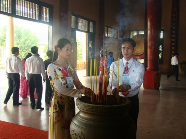 và Đ/c Lê Sơn Quang - Chủ tịch Hội SV trường thắp hương trong đại điện