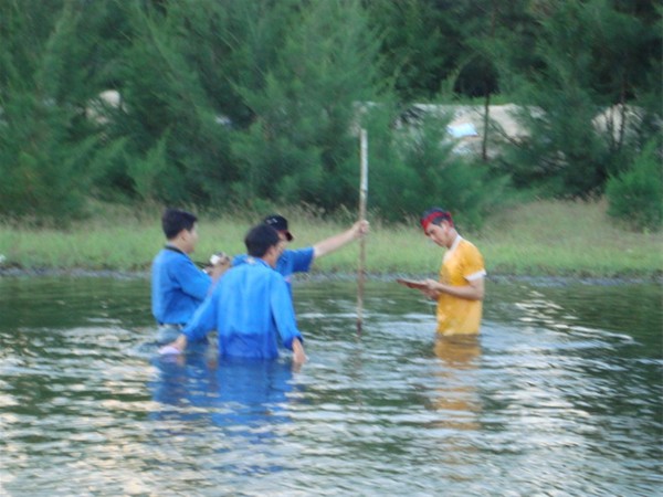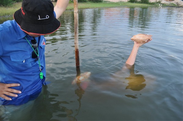 Hình 7: Một bạn trại viên đang chuẩn bị phần trò chơi dưới nước của mình