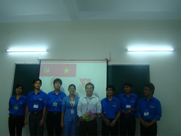 Hình 4: Đ/c Nguyễn Hồ Xuân Hương (thứ 4 từ trái sang) chúc mừng Ban chấp hành Đoàn khoa nhiệm kỳ 2009 - 2010
