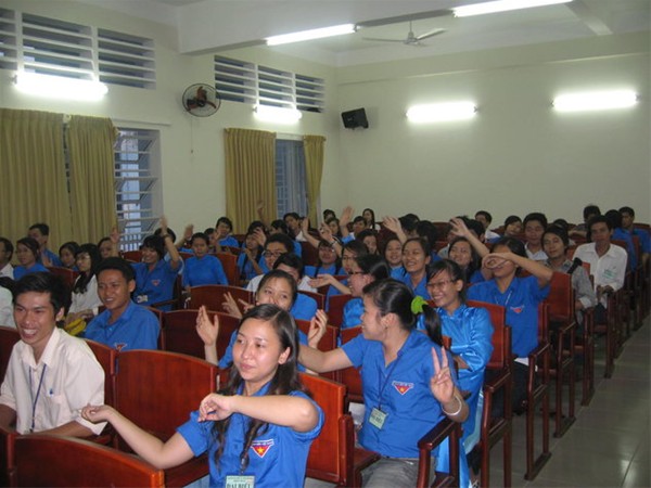 Hình 12: Các bạn Đoàn viên đang thưởng thức các tiết mục văn nghệ tại đại hội