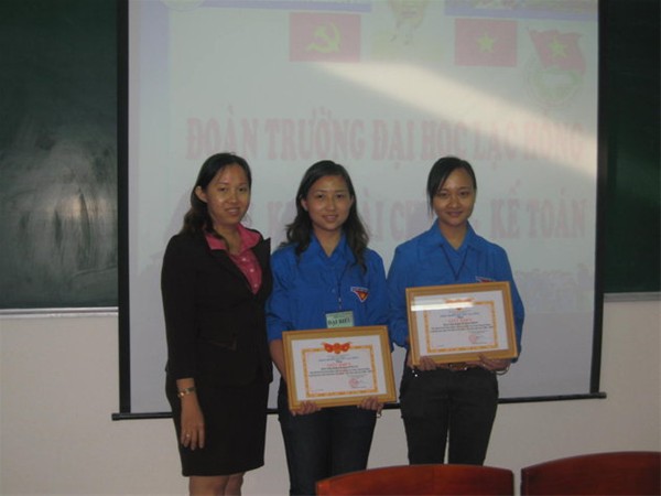 Hình 7: Cô Trần Thị Yến Phương - P. Trưởng khoa TCKT tặng giấy khen của Đoàn trường