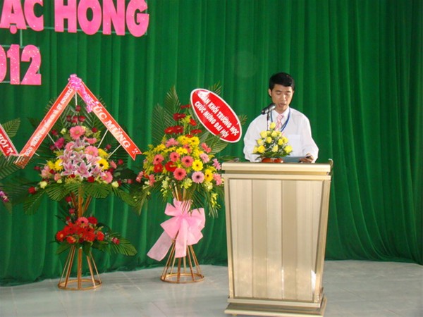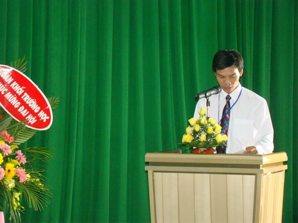 Hình 14: Đ/c Lê Sơn Quang đang thông báo kết quả của phiên làm việc thứ nhất của BCH Hội SV trường NK 2009 - 2012