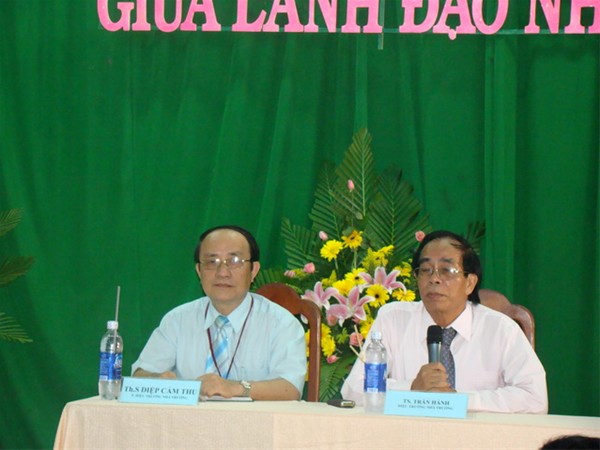 Hình 1: TS. Trần Hành - Hiệu trưởng nhà trường (bên phải) và Th.S Diệp Cẩm Thu - P. Hiệu trưởng nhà trường (bên trái)