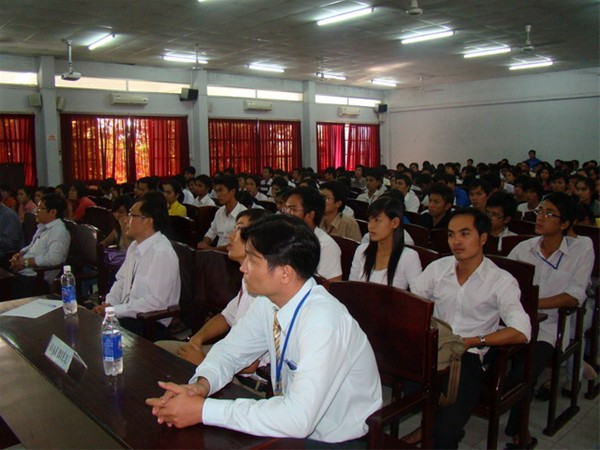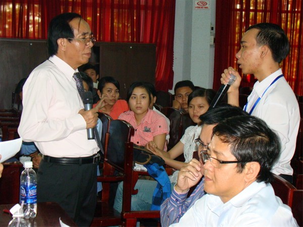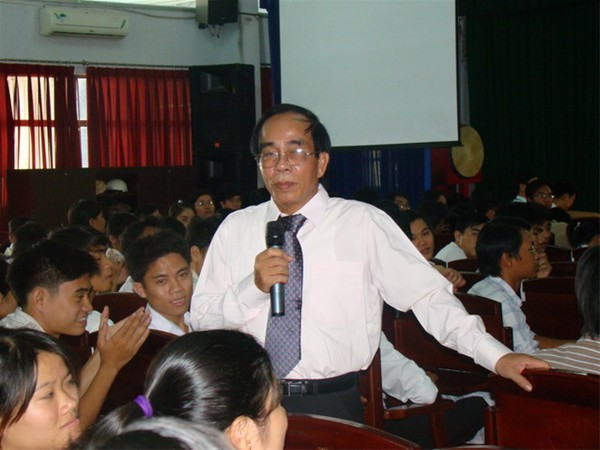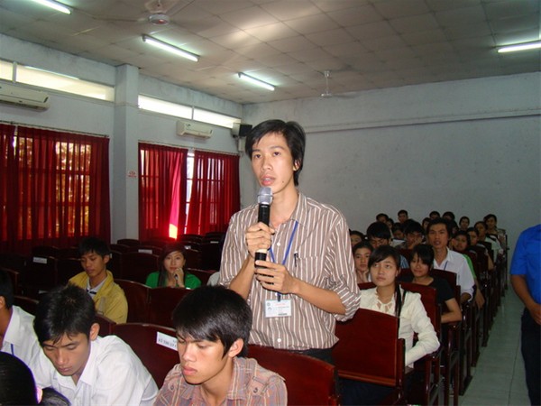 Hình 7: Để các bạn có thể nghe được các giải đáp của mình, TS Trần Hành đã đi đến cuối khán phòng để trực tiếp trả lời cho các bạn sinh viên.