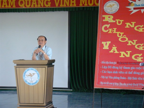 Hình 4: Th.S Diệp Cẩm Thu - P. Hiệu trưởng nhà trường phát biểu chúc mừng cuộc thi
