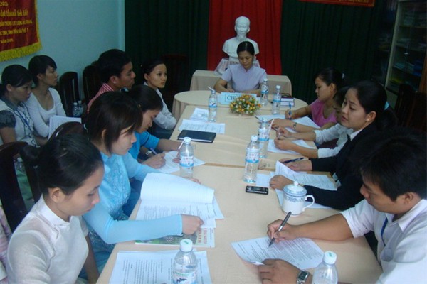 Các đồng chí đảng viên trong Chi bộ thảo luận nội dung bản phương hướng