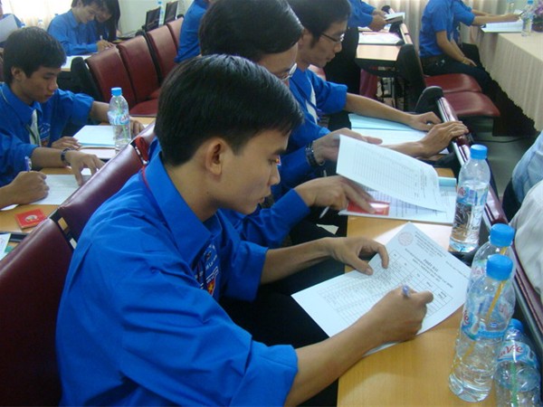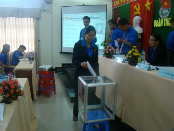 Sau phần chia tổ góp ý kiến về các nội dung trên, Đ/c Nguyễn Hồ Xuân Hương đã thay mặt Đoàn Chủ tịch trình bày dự thảo và lấy ý kiến của Đại biểu và biểu quyết của Đại hội về tiêu chuẩn, cơ cấu và số lượng Ban Chấp hành Đoàn trường nhiệm kỳ 2010 – 2012. Với sự tán thành của đại biểu trong Đại hội, Ban Chấp hành khóa IV đã trình bày trước Đại hội danh sách 23 đoàn viên ưu tú được giới thiệu tham gia Ban Chấp hành đoàn trường khóa V. Thay mặt Ban kiểm phiếu, Đ/c Phan Tôn Tẩn – Trưởng ban bầu cử đã thông qua thể lệ, nguyên tắc và hướng dẫn Đại hội tiến hành bỏ phiếu bầu.