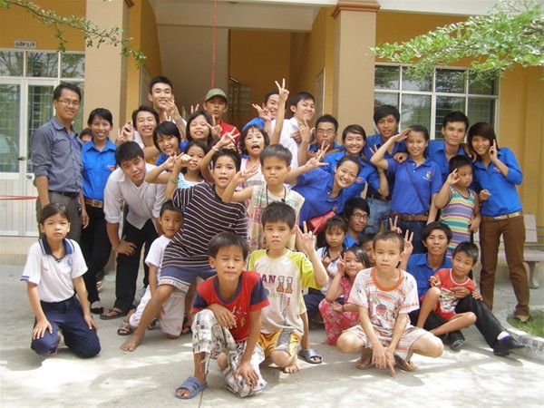 Các thành viên của CLB chụp hình lưu niệm với các em