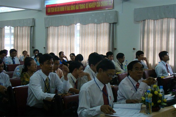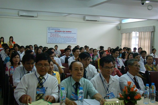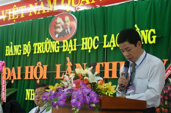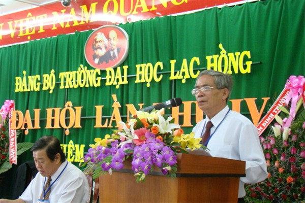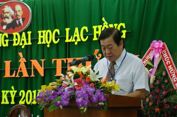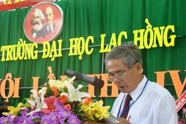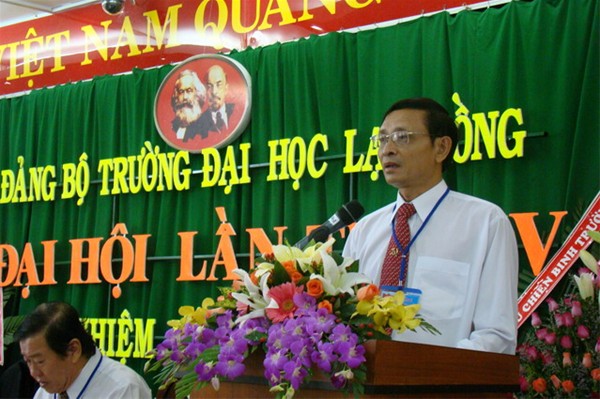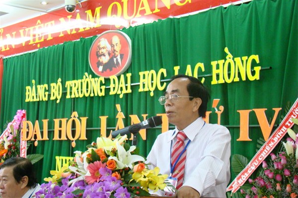 Tiếp theo là phần trình bày tham luận của đ/c Trần Hành – Hiệu trưởng nhà trường về công tác lãnh đạo các đơn vị trực thuộc trường thực hiện nhiệm vụ chính trị của nhà trường và định hướng phát triển của nhà trường và để đưa trường vào danh sách 10 trường đại học có chất lượng đào tạo tốt nhất Việt Nam trong thời gian tới.
