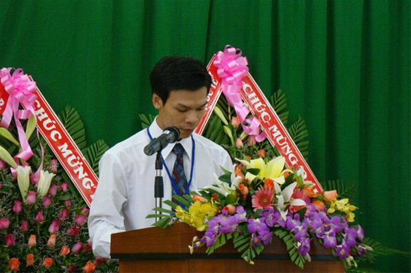 Đ/c Trần Hành - Hiệu trưởng nhà trường trình bày tham luận tại Đại hội