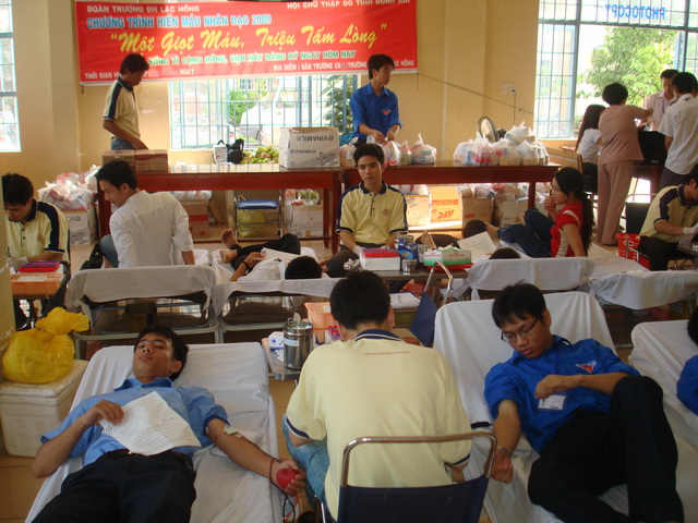 Phong trào hiến máu tự nguyện là một việc làm mang tính xã hội và nhân văn sâu sắc, thể hiện tinh thần đoàn kết, chia sẻ, tương thân tương ái, giúp đỡ nhau trong cộng đồng. Trong những năm qua, phong trào vận động và hiến máu của trường Đại học Lạc Hồng không ngừng lớn mạnh. Số lượng lấy máu thành công và chất lượng máu ngày càng được nâng cao. Các năm qua đã có hàng ngàn cán bộ giáo viên, nhân viên và sinh viên đăng ký và hiến máu, chỉ riêng trong năm 2009, trường Đại học Lạc Hồng đã có gần 1500 đơn tham gia hiến máu và đã lấy thành công hơn 650 đơn vị máu. Đây là một con số không nhỏ, chính số máu này đã đem lại niềm vui và hạnh phúc cho những người được tiếp nhận.
