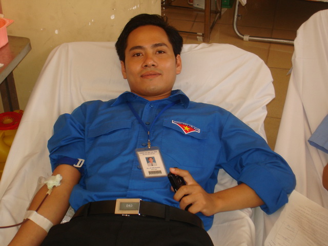 Đ/c Trần Hoàng Minh nhận huy hiệu trong công tác vận động hiến máu năm 2009