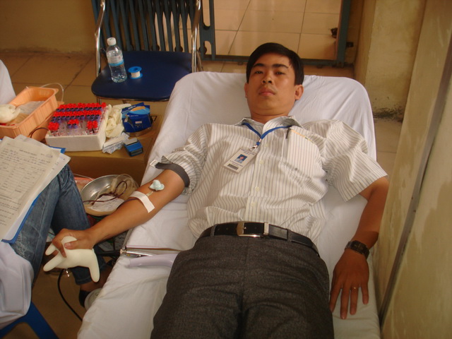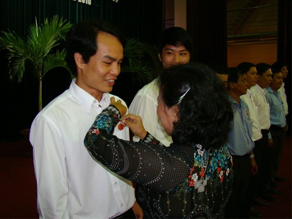Thầy Châu Quang Trạng nhận huy hiệu trong công tác vận động hiến máu năm 2009