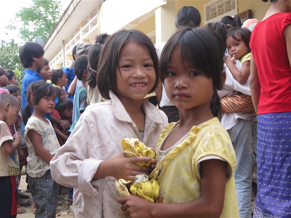 Gương mặt vui mừng của hai em khi nhận được quần áo và bánh kẹo