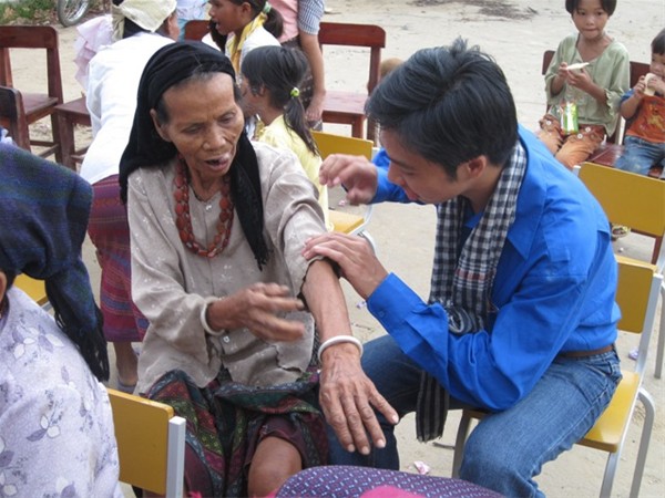 Đồng chí Lê Sơn Quang ân cần thăm hỏi khi bà con khám bệnh