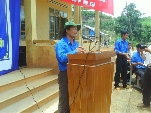 Đ/c Võ Trung Mạnh - P. Bí thư tỉnh Đoàn KonTum phát biểu chào mừng đội Thanh niên tình nguyện đến từ trường ĐH Lạc Hồng - Tỉnh Đồng Nai