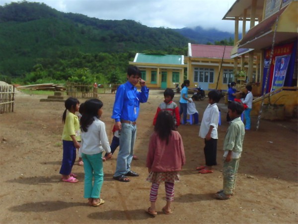 Bạn Văn Huế đang hướng dẫn các em trò chơi trong giờ giải lao