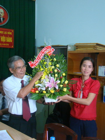 Đaị diện Đảng ủy cấp trên, đ/c Lê Văn Hùng – Tỉnh ủy viên, Bí thư Đảng ủy khối Dân chính Đảng đã trao quyết định và tặng huy hiệu 50 năm tuổi đảng cùng phần thưởng 3 triệu đồng cho đ/c Nguyễn Trùng Phương. Thay mặt Ban Giám hiệu, đ/c Trần Hành – Hiệu trưởng nhà trường cũng đã phát biểu chúc mừng và trao tặng số tiền 15 triệu đồng cho đ/c Nguyễn Trùng Phương.