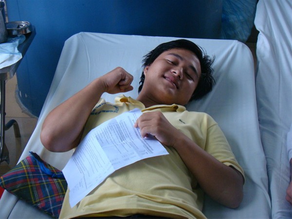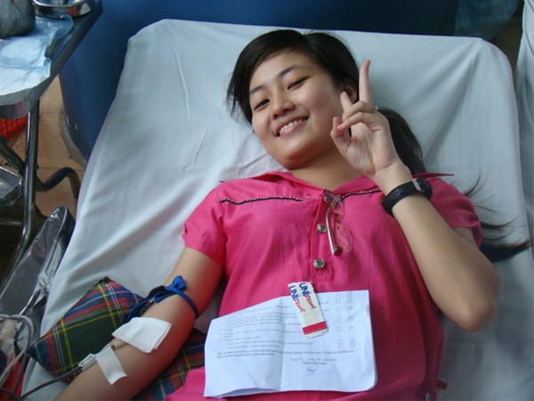 ...và nét mặt vui tươi khi được hiến máu trên gương mặt các bạn sinh viên tình nguyện