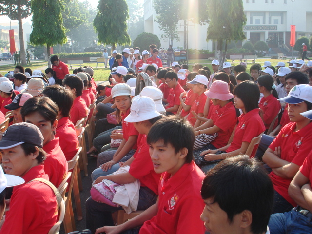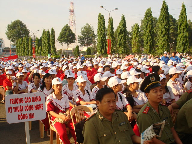 Các bạn Đoàn viên sinh viên trường đại học Lạc Hồng trong buổi lễ phát động bảo vệ môi trường (5/6/2008)