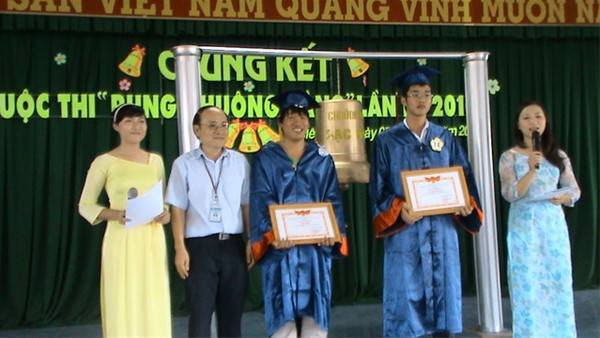 Thầy Diệp Cẩm Thu trao hai giải nhì của cuộc thi