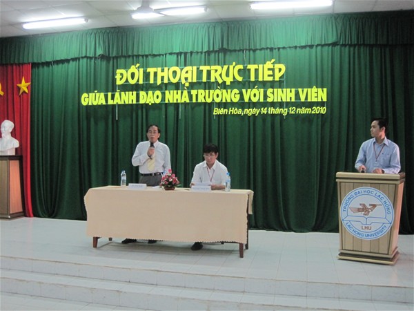 Đối thoại trực tiếp với lãnh đạo nhà trường là hoạt động thường niên của Đoàn TN – Hội sinh viên trường. Qua các buổi đối thoại thể hiện tinh thần thầy và trò trường Đại học Lạc Hồng cùng nhau xây dựng ngôi trường thân yêu ngày càng hoàn thiện và nâng cao về cơ sở hạ tầng, trang thiết bị cũng như chất lượng dạy và học nhằm cụ thể hóa mục tiêu đưa trường Lạc Hồng vào tốp 10 trường Đại học có chất lượng cao nhất Việt Nam.