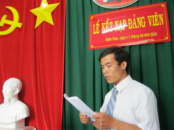 Đoàn viên Trần Hải Hùng đọc đơn xin vào Đảng
