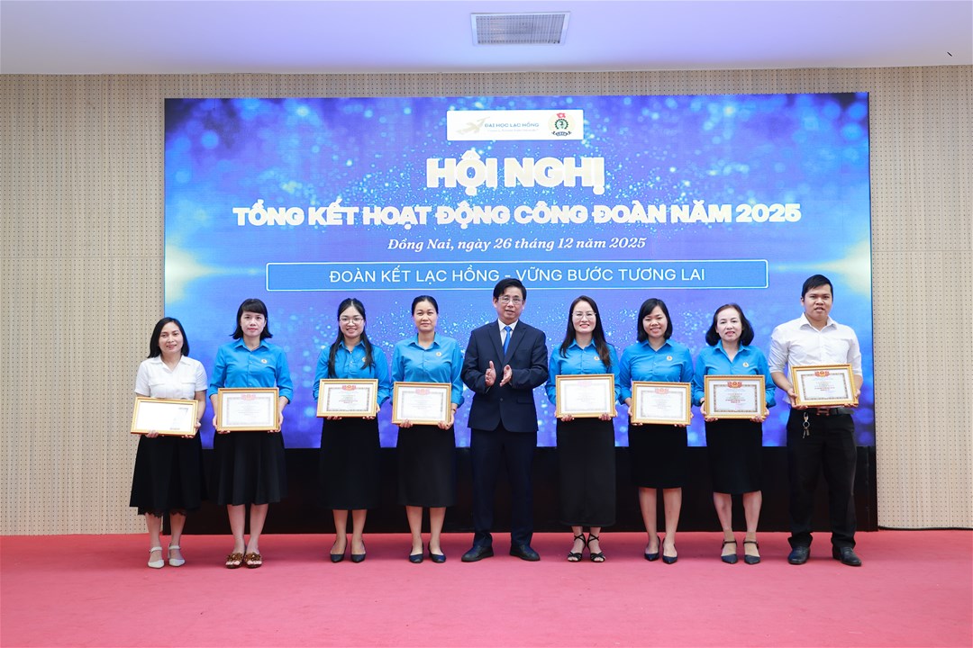 Nhằm ghi nhận và biểu dương những nỗ lực, đóng góp tích cực của các tập thể và cá nhân trong năm học 2024 – 2025, Công đoàn Trường đã tiến hành khen thưởng 59 công đoàn viên xuất sắc và 08 Tổ Công đoàn xuất sắc. Đây là sự động viên kịp thời, góp phần lan tỏa tinh thần trách nhiệm, nhiệt huyết và gắn bó của đội ngũ NGNLĐ đối với sự phát triển chung của Trường Đại học Lạc Hồng.