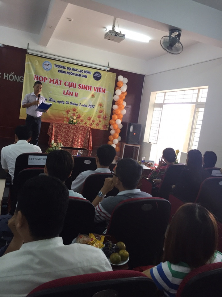Theo chỉ đạo của Ban Giám hiệu Nhà trường và Ban Lãnh đạo Khoa, nhằm tăng cường mối giao lưu, trao đổi kinh nghiệm và hỗ trợ lẫn nhau giữa các cựu sinh viên Khoa Ngôn Ngữ Anh, tạo điều kiện gặp gỡ, trao đổi, nắm bắt thông tin hai chiều giữa các giảng viên, Ban lãnh đạo Khoa, Trường, lắng nghe ý kiến phản hồi của cựu sinh viên từ đó hoàn thiện chương trình đào tạo, nâng cao chất lượng giảng dạy và học tập, đáp ứng đúng nhu cầu thực tiễn của xã hội, trong đó vai trò của cựu sinh viên là hết sức quan trọng. Vào lúc 8h00 ngày 06 tháng 5 năm 2017 tại Hội trường I209, Cơ sở 6, Trường ĐH Lạc Hồng, Khoa Ngôn Ngữ Anh đã long trọng tổ chức chương trình họp mặt cựu sinh viên lần II nhằm mục đích giúp cựu sinh viên của Khoa có dịp thăm lại các thầy cô và giao lưu với các sinh viên khóa dưới, gắn kết hơn nữa mối quan hệ giữa thầy cô giáo với sinh viên, và giữa sinh viên các khóa với nhau.