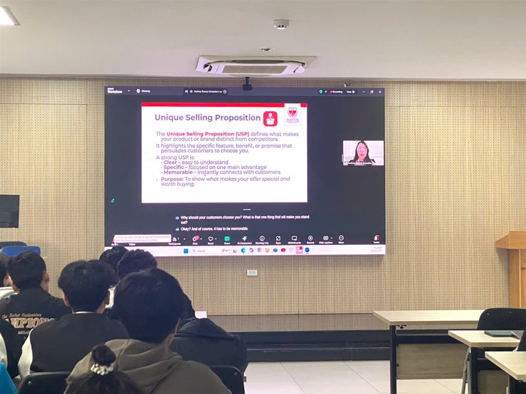 Sự kết nối giữa cô Andrea Gonzales và cô Trần Thị Diệu Hiền đã mang đến cho sinh viên một tiết học mang tính quốc tế cao, kết hợp hài hòa giữa kiến thức học thuật toàn cầu và thực tiễn ứng dụng tại Việt Nam.