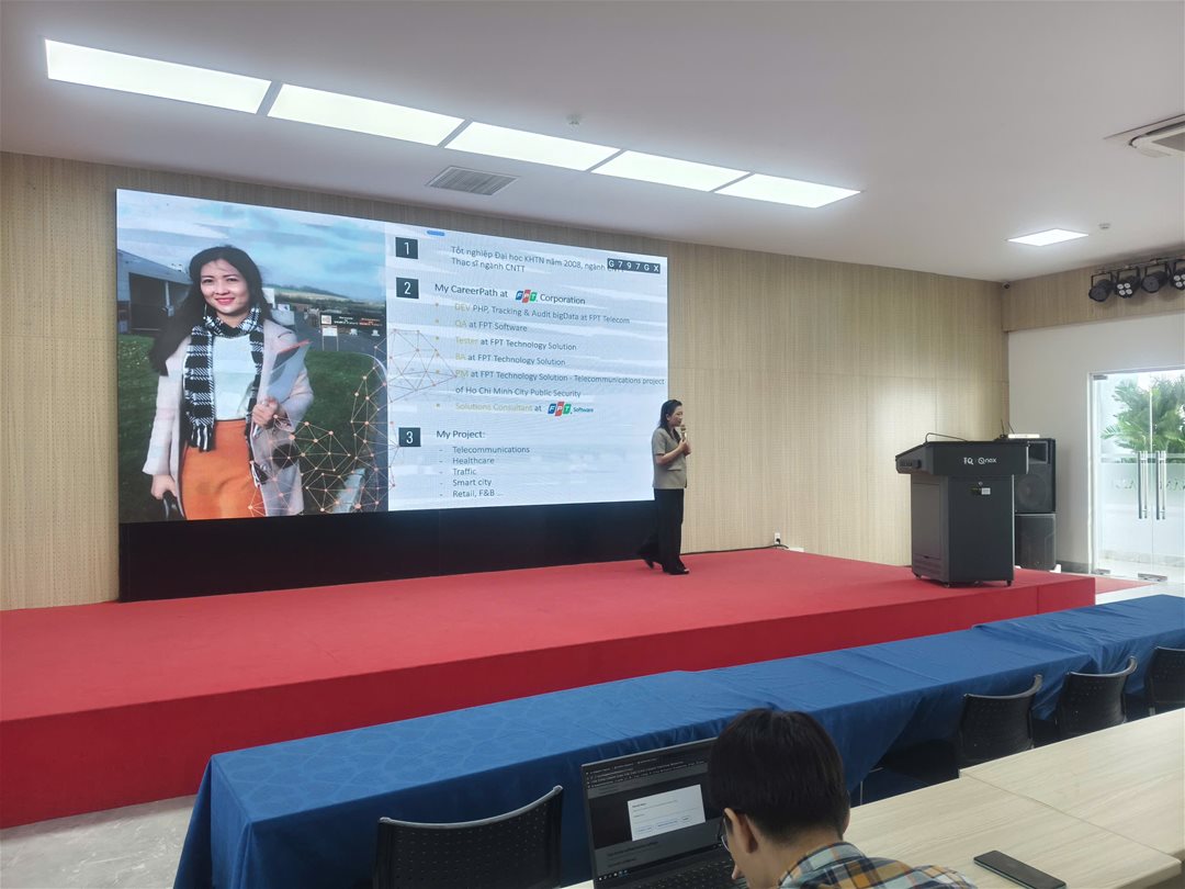 Bên cạnh đó, cô còn giới thiệu các xu hướng ứng dụng Trí tuệ nhân tạo (AI) trong kiểm thử, tự động hóa quy trình, và tối ưu hóa trải nghiệm người dùng – những kỹ năng đang được các doanh nghiệp công nghệ hàng đầu quan tâm.